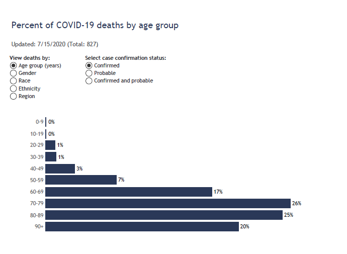 Per WI DHS, the chart below shows COVID-19 deaths per age: