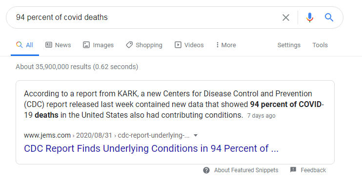 So, if you are following along here …. only 10,000 deaths in the U.S. did not have underlying conditions.