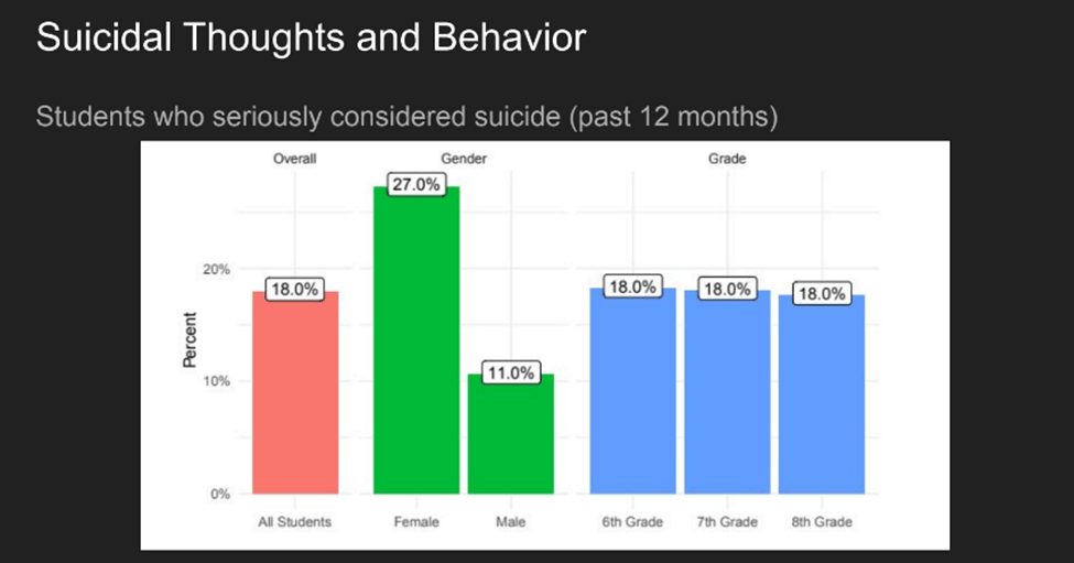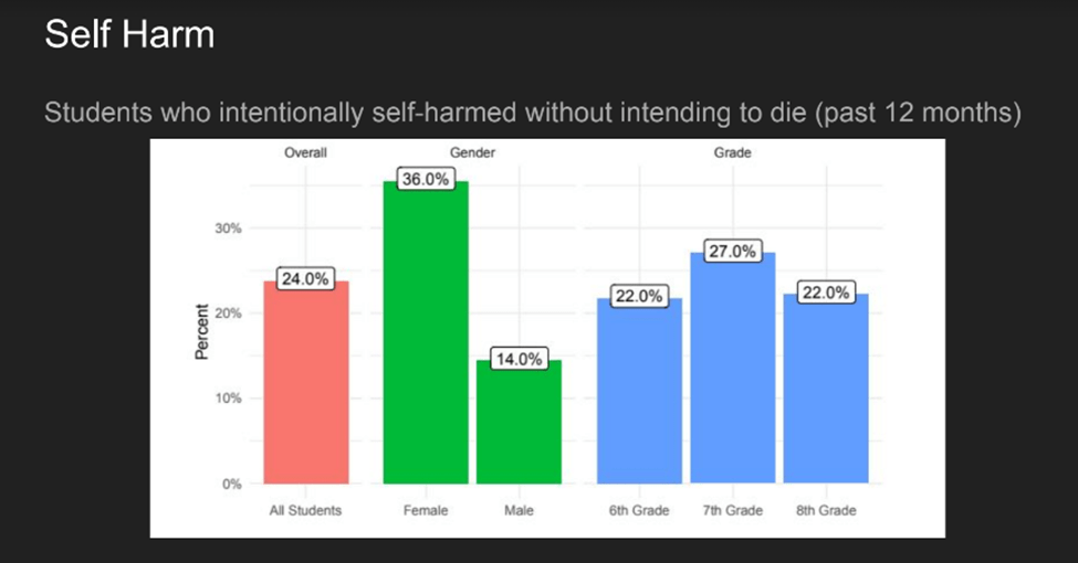 - Below are some graphs that came from the last school board meeting. These are numbers from the Whitewater Middle School survey of students.