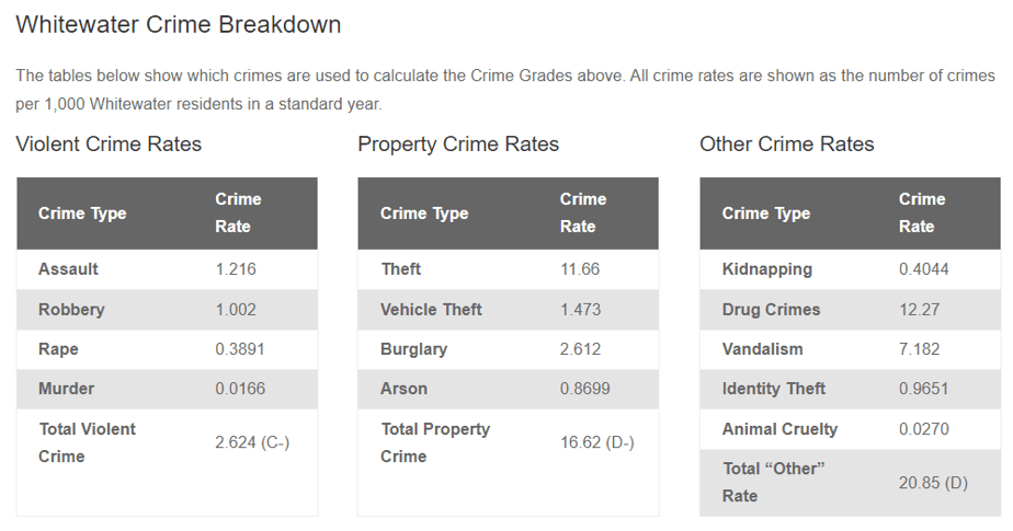 The Breitbart article referenced a study of Whitewater crime by Crimegrade.org.
