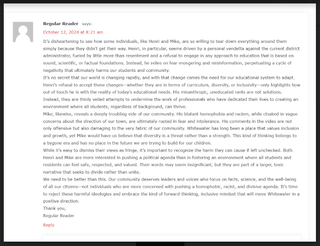 This is becoming a common occurrence. Several weeks ago I wrote about the need for Whitewater to fix the lakes before taking on more garbage. The post was released at 6am. By 930am, McDarrison had published a hasty reply from Whitewater’s progressive city manager. To my credit, that evening, my post had five times the hits of the rapid response by McDarrison/Weidl. I appreciate the support.