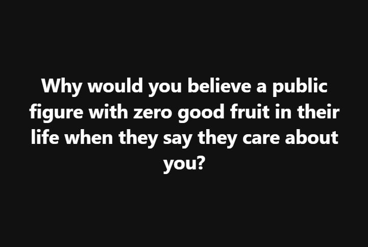 I want to reiterate here…. why trust a public leader with no good fruit from their lives? When all they can do is dehumanize those that disagree.