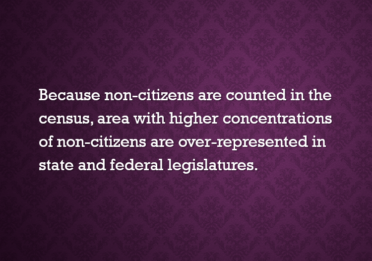 It is estimated that between eleven and twenty Democrat seats in the House are a direct result of counting non-citizens in the census. I believe this is by design.